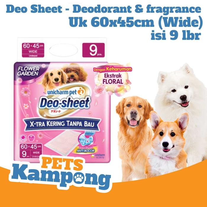 Unicharm Pet DeoSheet Xtra Kering Wide isi 9Pcs Training PeePad Anjing - Flora Garden