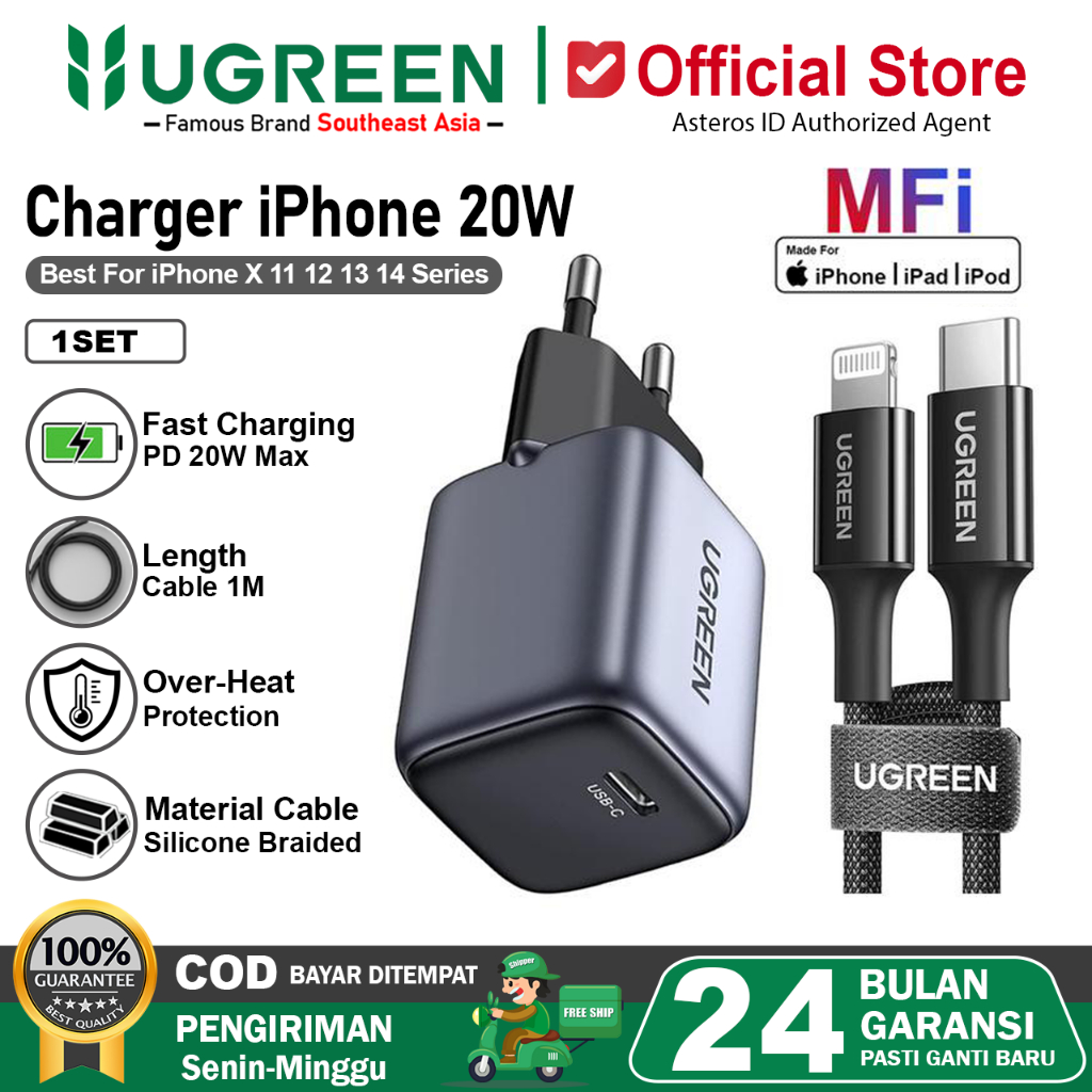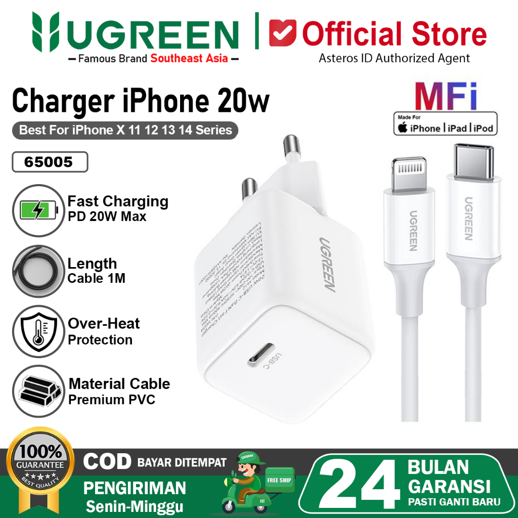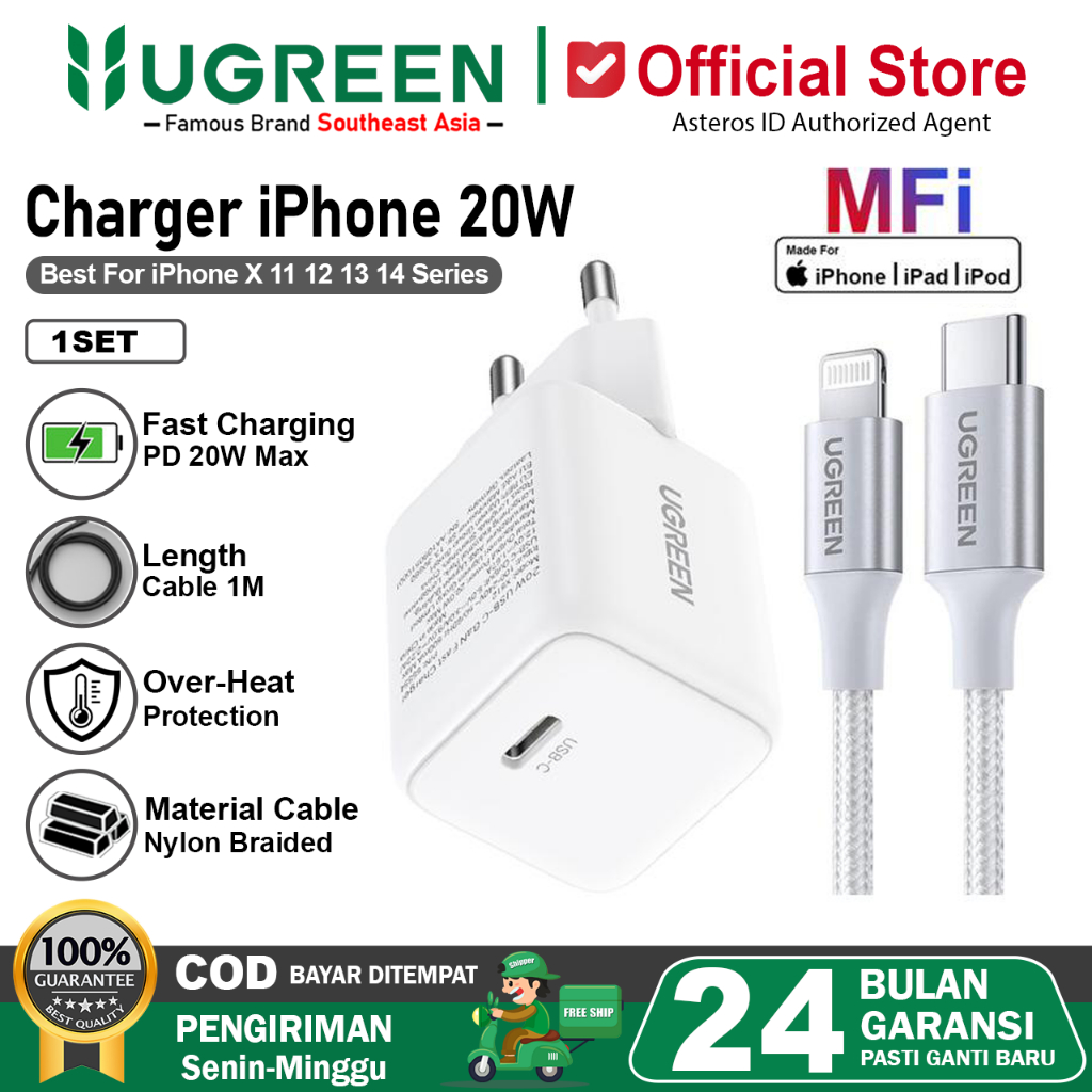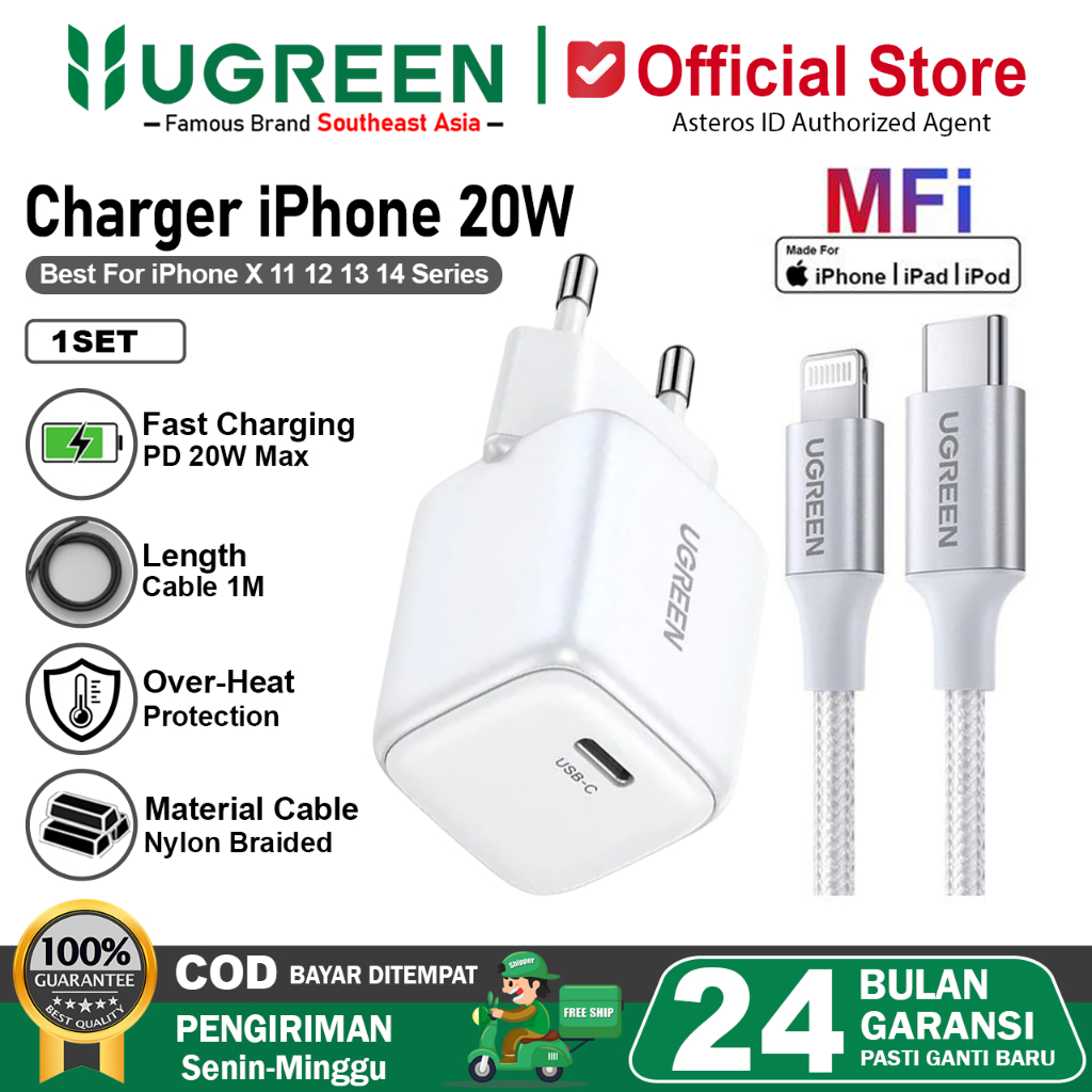 UGREEN Charger MFI iPhone 11 12 13 14 PD Type C to Lightning Fast Charging 20w 30w