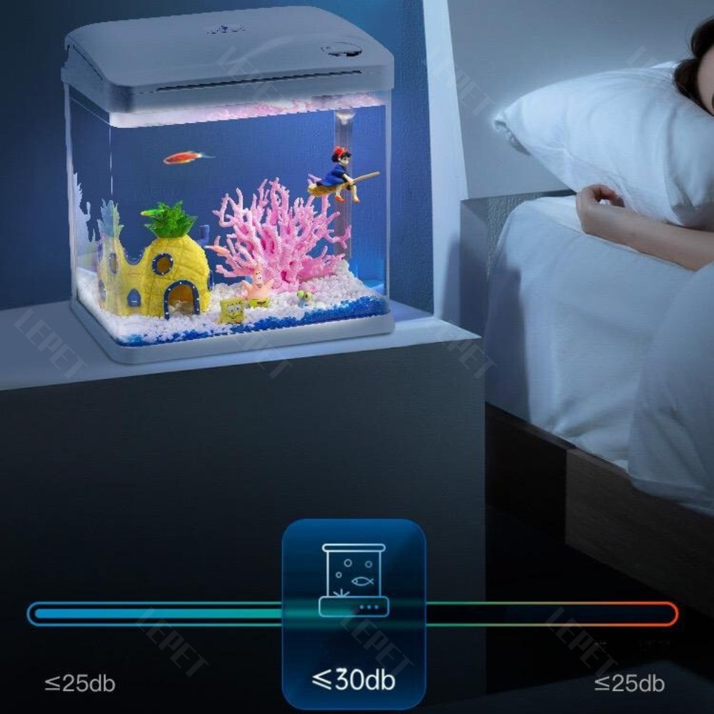TERLARIS LEPET Akuarium Ikan Mini XS 220/260/320 Tangki Ikan Mini Dengan Filter Dan Lampu Led