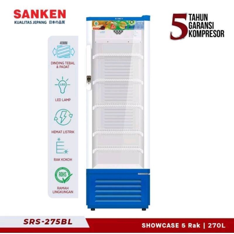 [Mall] PROMO KULKAS SHOWCASE MURAH SANKEN SHOWCASE SRS-275-BL 27O LITER 5 RAK BISA CICILAN TANPA DP