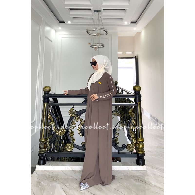 Abaya Basic Habibah Premium Gamis Plain Umroh Daily Abaya Kancing Dress Gamis Batwing Oversize Crinkle Inara Button - EM