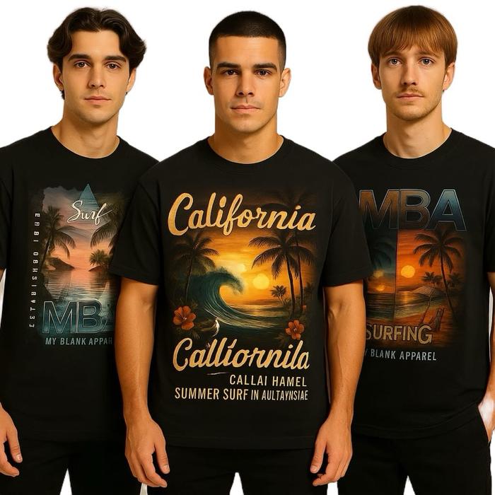 BUY 1 GET 2 FREE (Dapat 3 pcs) Kaos MBA My Blank Appareel 100% Cotton 24s Edisi Motif Surfing Hitam