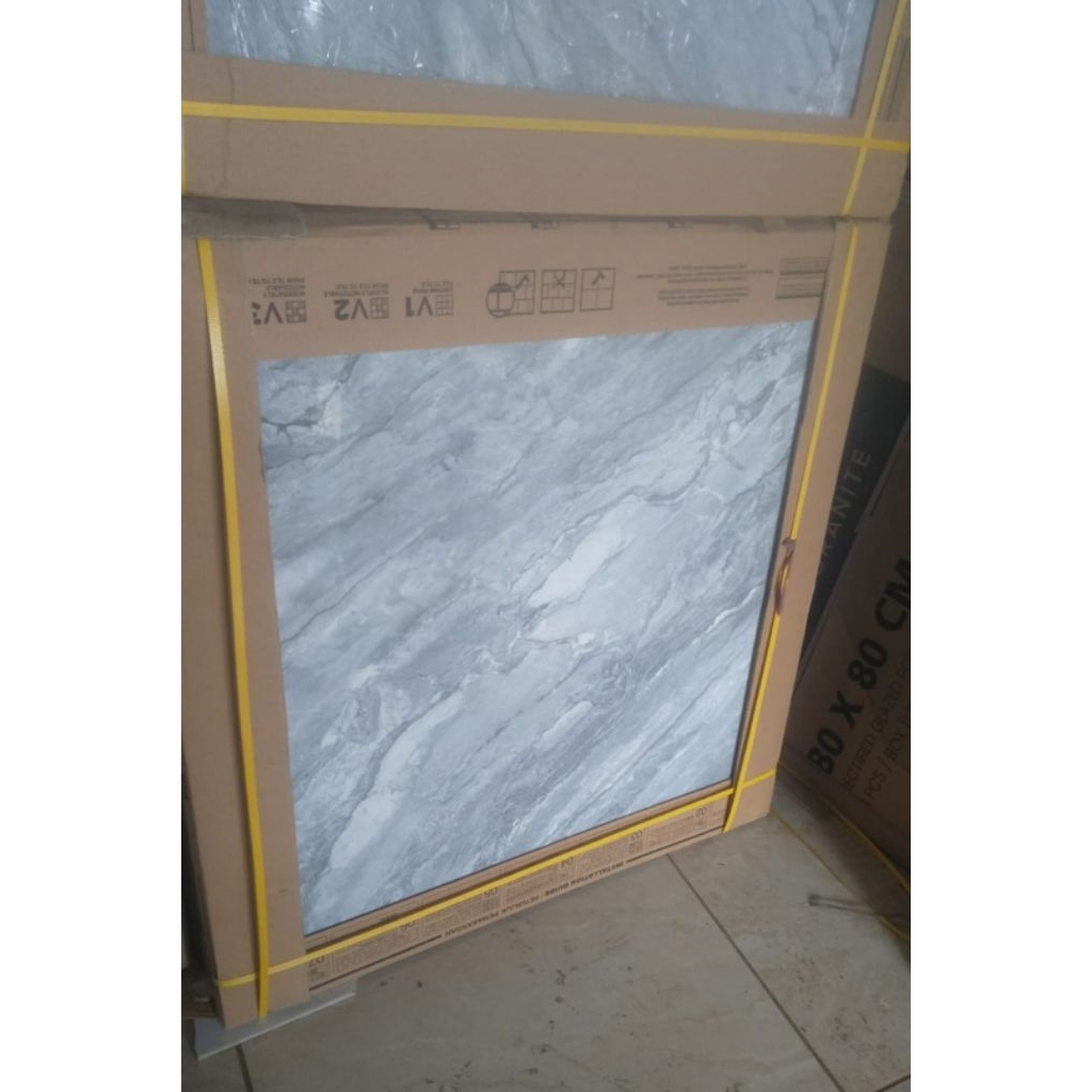 GRANIT LANTAI MOTIF ABU GLOSSY 80x80 INDOGRESS GREY