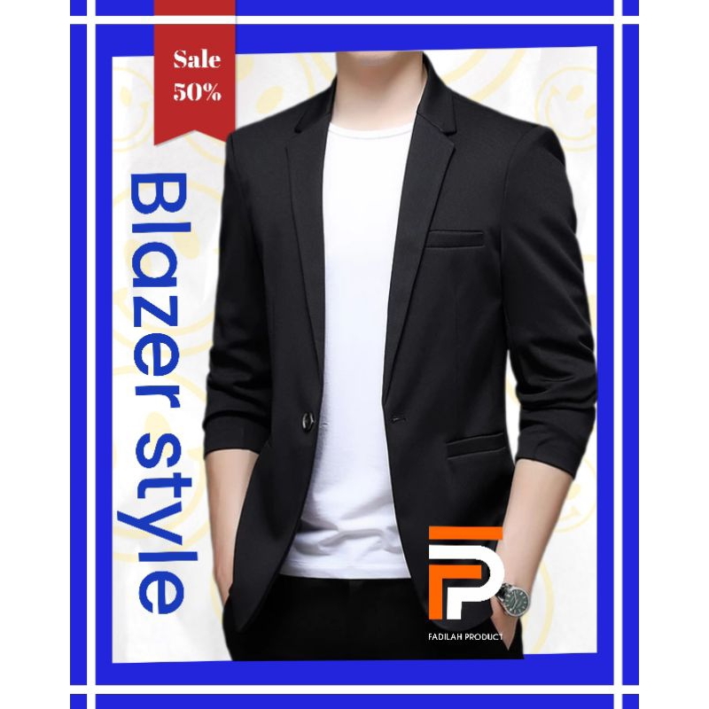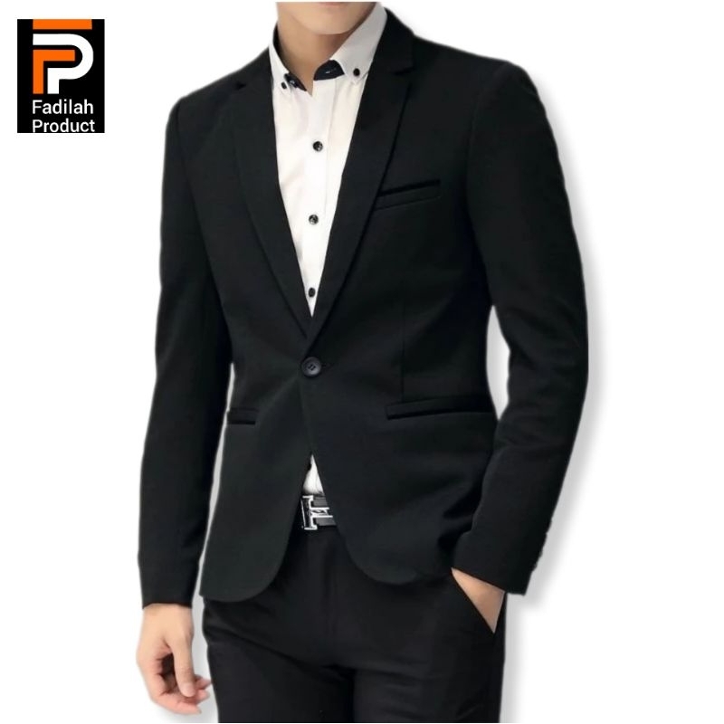 Jas Blazer Pria Hitam Semi Formal Slimfit Model Saku Tanpa Tutup Lengan Panjang