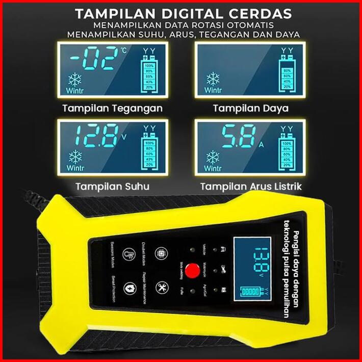Portable Lcd Display Motor Mobil C1202-2 Motor Intelegent Charger 12v 6ampere 12v 6a Adaptor Pengisi Daya Baterai