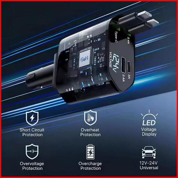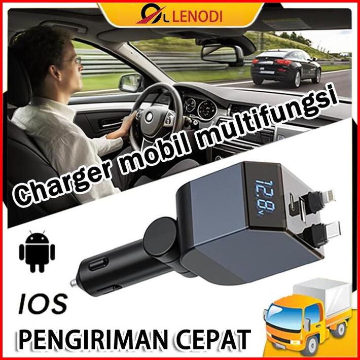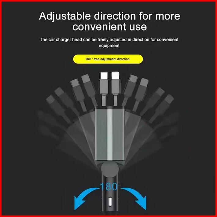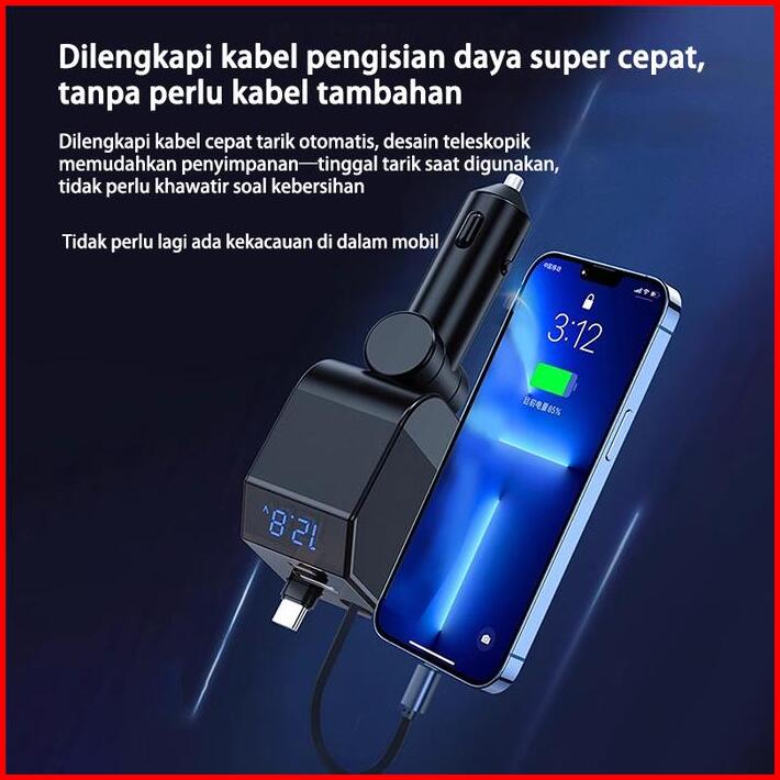 Car Charger Fast Charging Mobil Charger 4 In 1 Pd 120w Type-c Dan Iphone Aksesoris Mobil Retractable Kabel