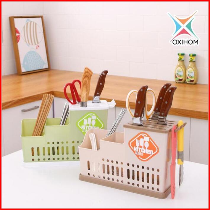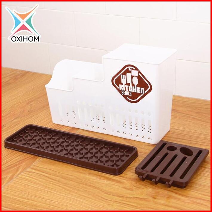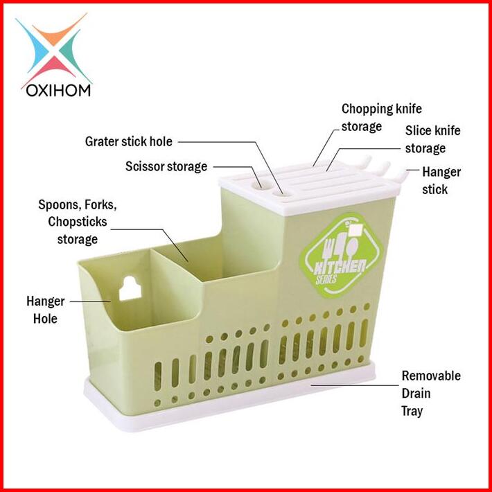 Oxihom Tempat Pengering Sendok Garpu Pisau Sumpit Dapur Drain Holder Plastik Rack