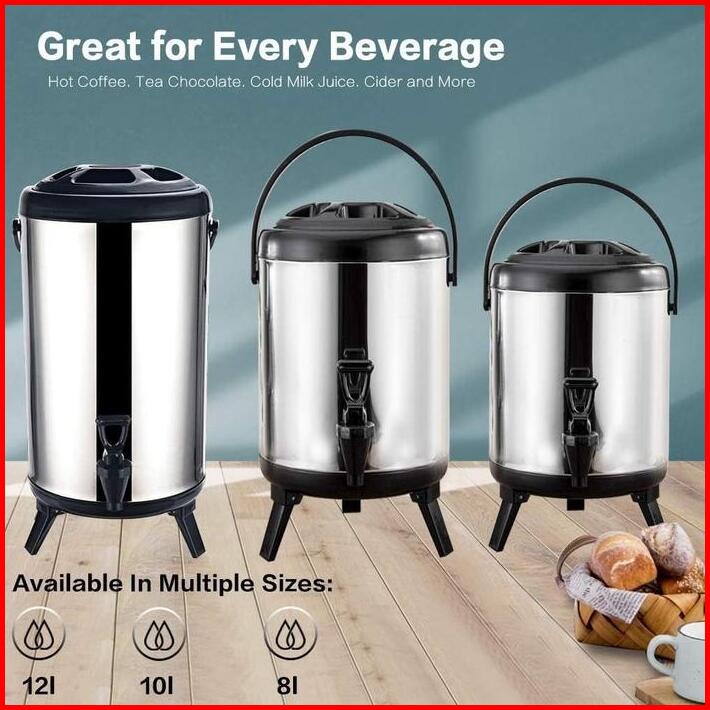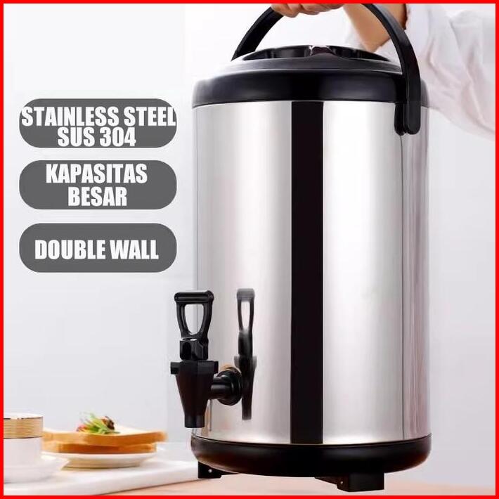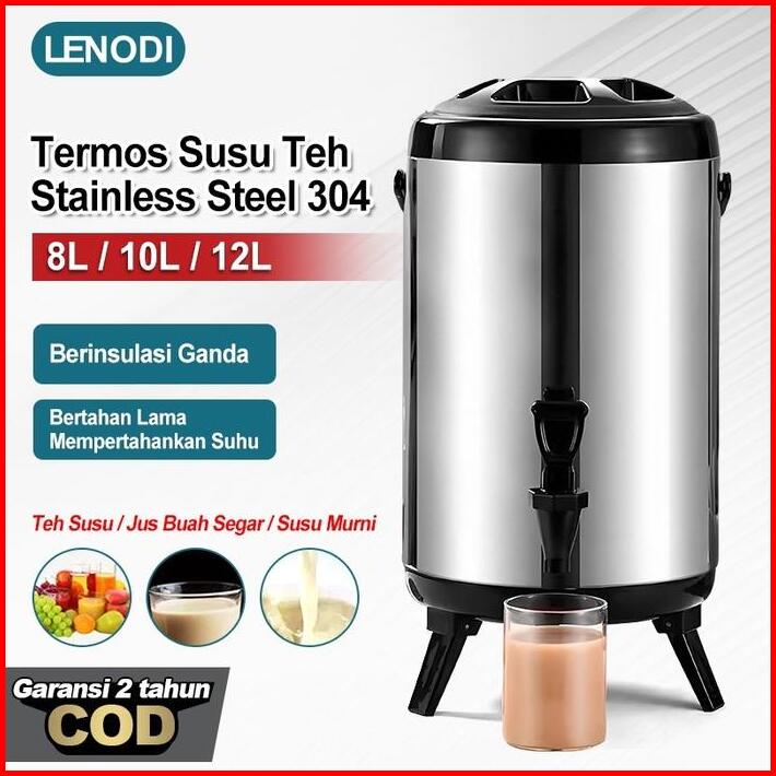 Lenodi Steel Sus304 8l 10l 12l Termos Milk Tea Bucket Jumbo Termos Air Milk Tea 8 10 12 Liter Serbaguna Termos Tahan Lam