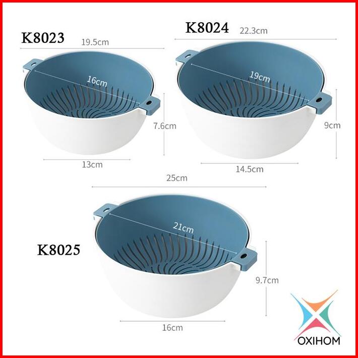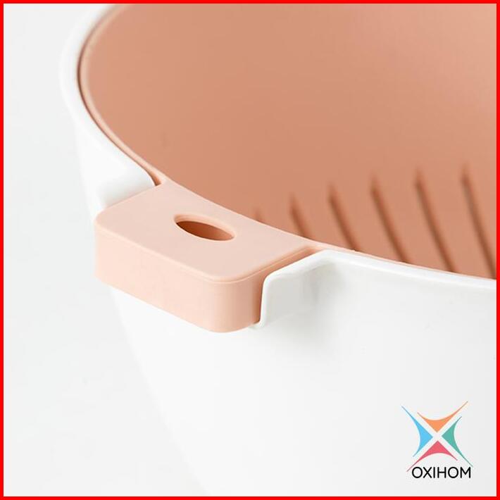 Oxihom Mangkok Baskom Saringan Ganda Cuci Buah Sayur Beras Drain Basket Plastik