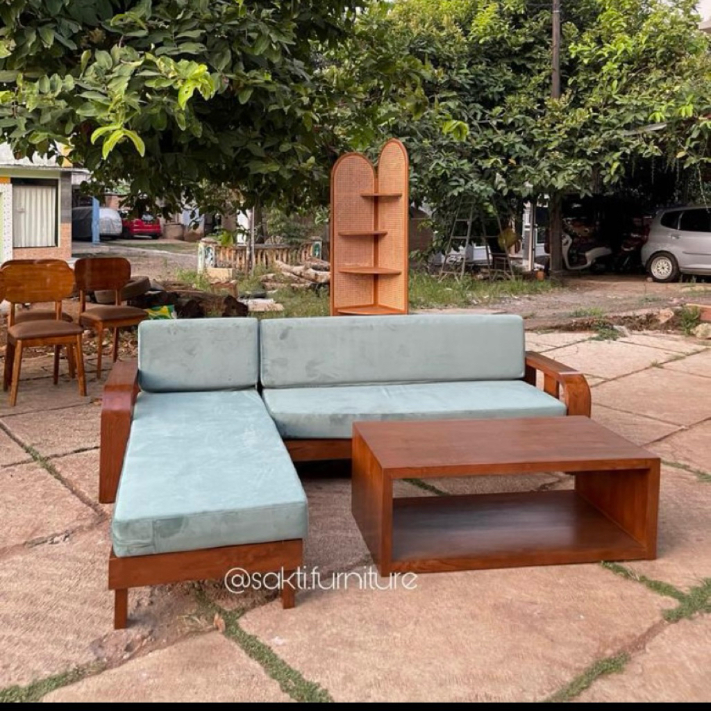 Sofa sudut kayu jati minimalis Set sofa L kayu solid minimalis Sofa sudut L minimalis