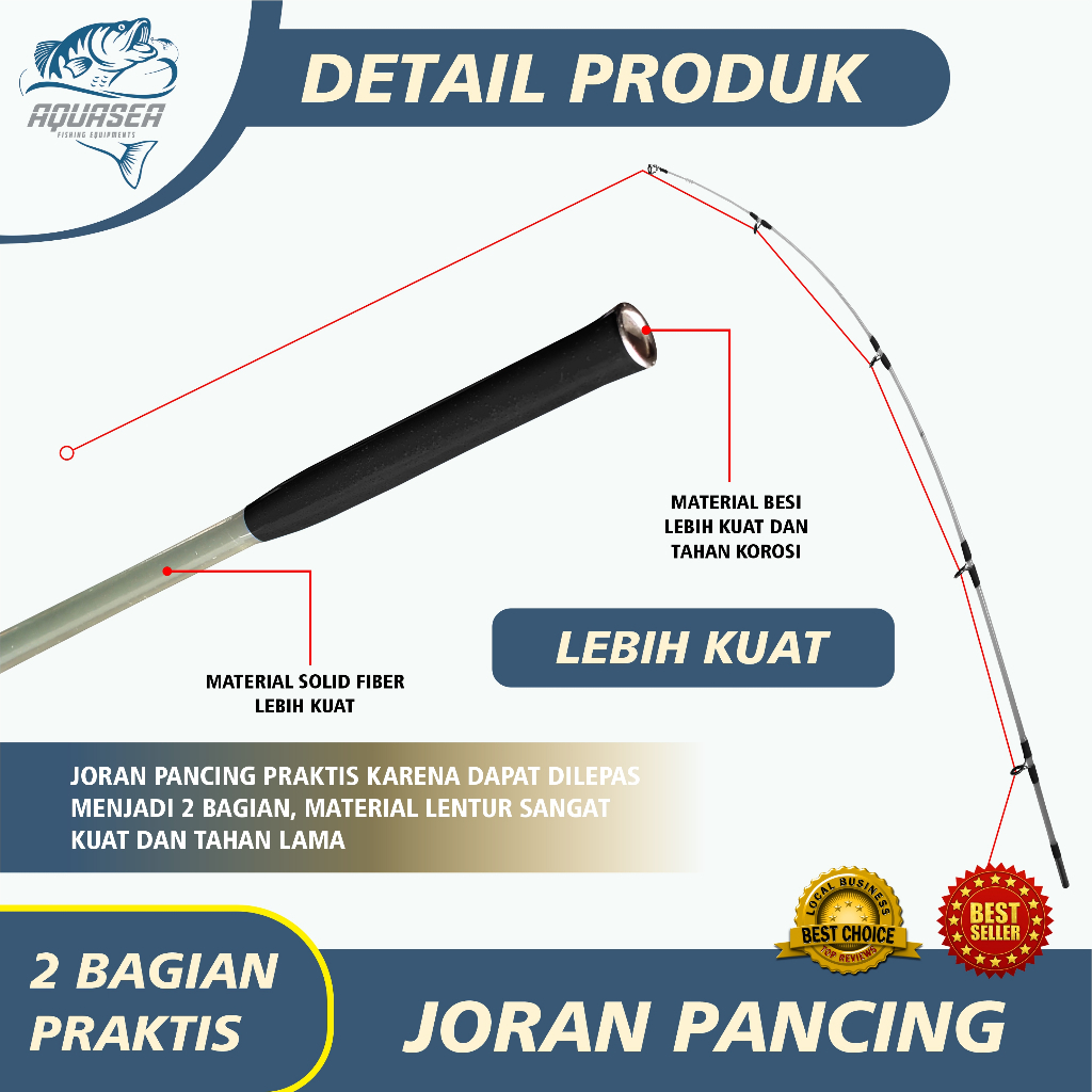 Joran Pancing 150cm 180cm Alat Pancing Pole Kuat AQUASEA