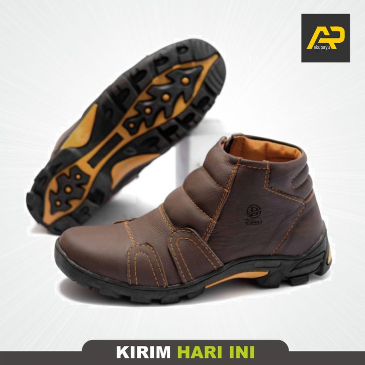 Sepatu Boots Pria Kulit Sapi Resleting Sol Karet PREMIUM