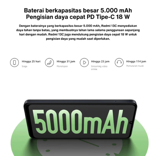 XIAOMI REDMI 13C 8GB/256GB Garansi Resmi Baterai 5000mAh | Layar Imersif 6.9" 120Hz