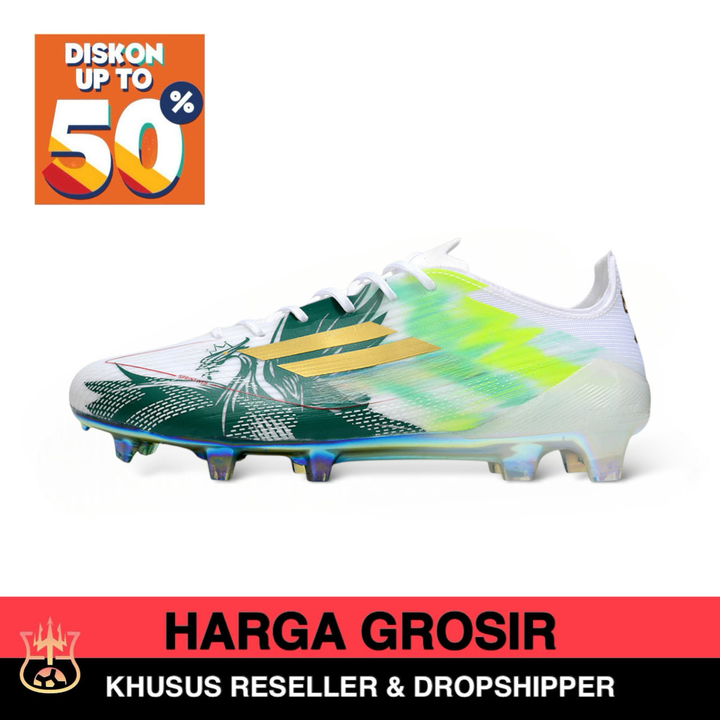 ( ORIGINAL ) Sepatu Bola F50 Elite Mo Salah White Green FG