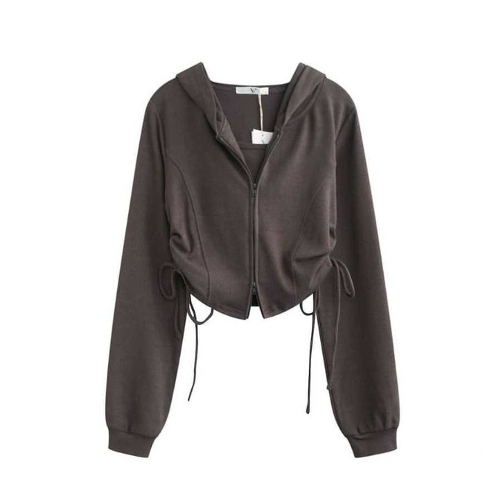 TERBARU Jaket Wanita Korean Style Adella Crop Zipper Serut - jaket casual atasan wanitan kekinian efaff