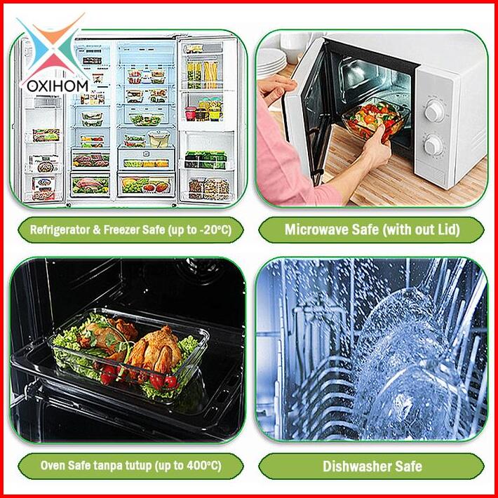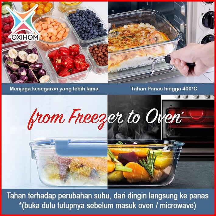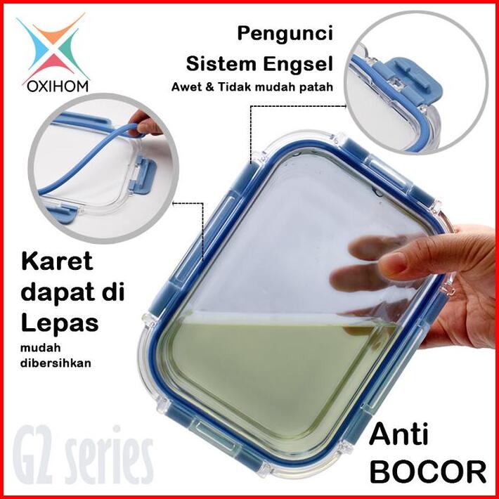 Oxihom Kotak Tempat Makan Kaca Glass Food Container Kedap Udara G2 Karet