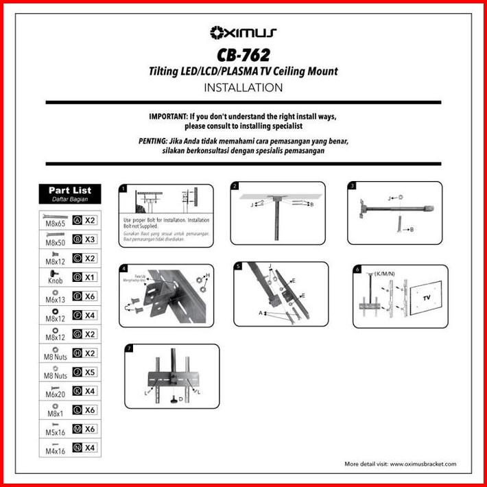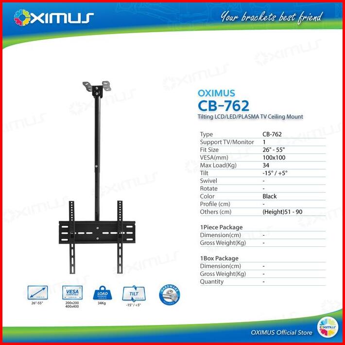 Bracket Tv Ceiling Gantung Plafon Oximus Cb762 26 -55 Tilt Swivel Monitor Black Lcd
