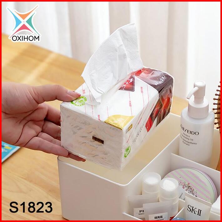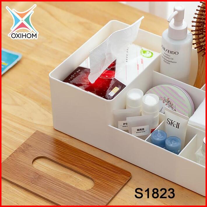 Oxihom Tempat Tisu Rak Kosmetik Rak Make Up Stationary Rak Dapur Kotak Tissue Kayu Plastik Penyimpanan