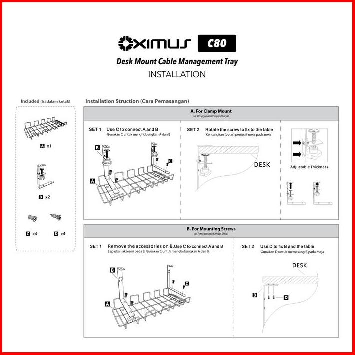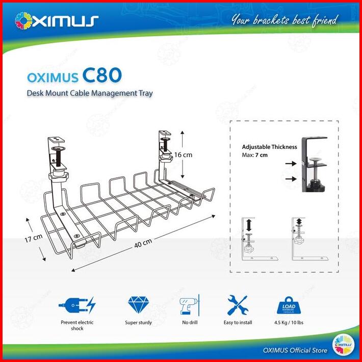 Desk Mount Cable Management Tray Oximus C80 Alat