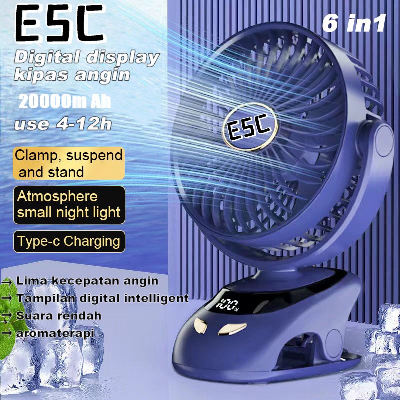 ESC 30000-50000mAh Kipas Angin USB Clip Mini Fan Rotating Kipas Angin Meja Mini Jepit Portable LED Display Portable Fan Aromaterapi kipas mini