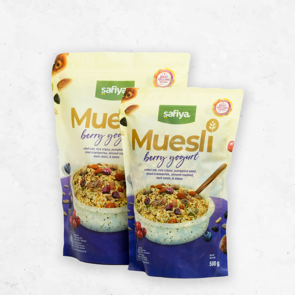 MUESLI BERRY YOGURT SAFIYA 500 GR SEREAL OATMEAL WITH ALMOND SARAPAN SEHAT PREMIUM