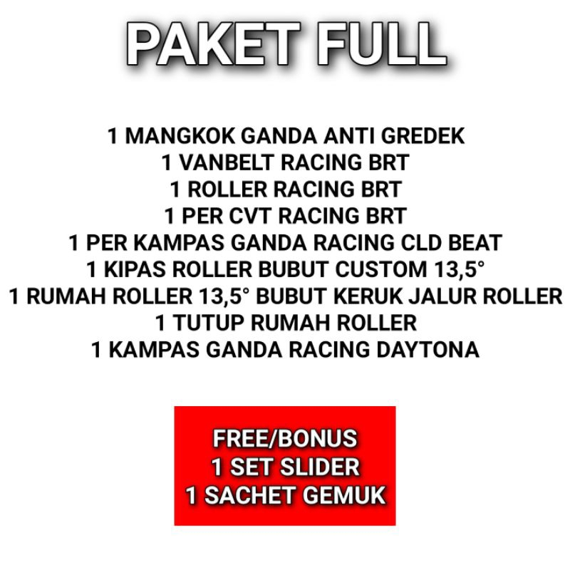Paket Full Kirian CVT BRT BeAT Pulley Ori Custom Anti Gredek Beat Karbu Beat Fi Esp S