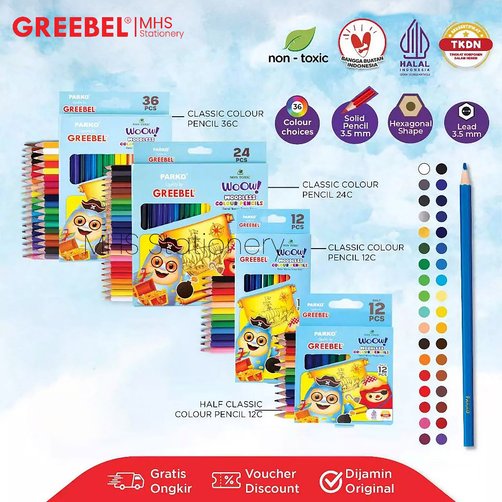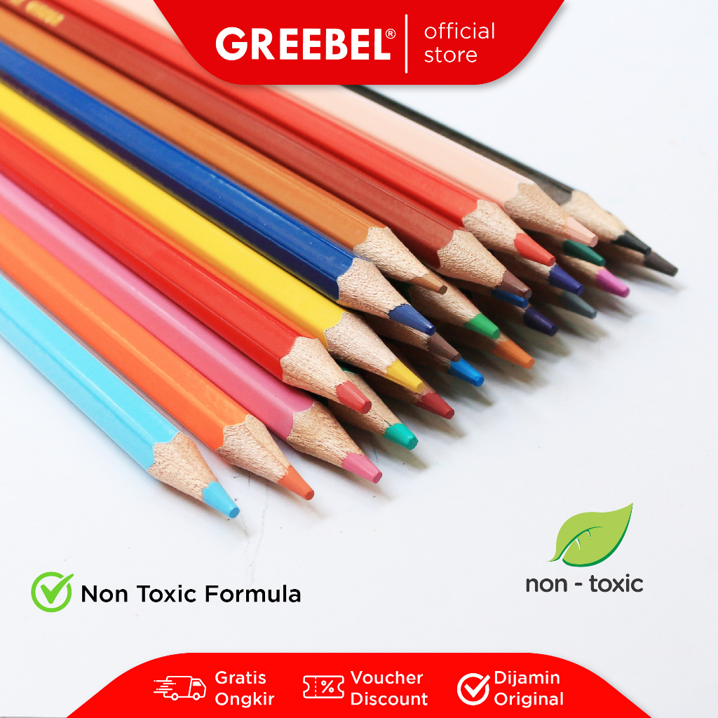 Color Pencil Pensil Warna 12 24 36 Warna Aman untuk Anak Mewarnai Parko Greebel Joyko Woodless