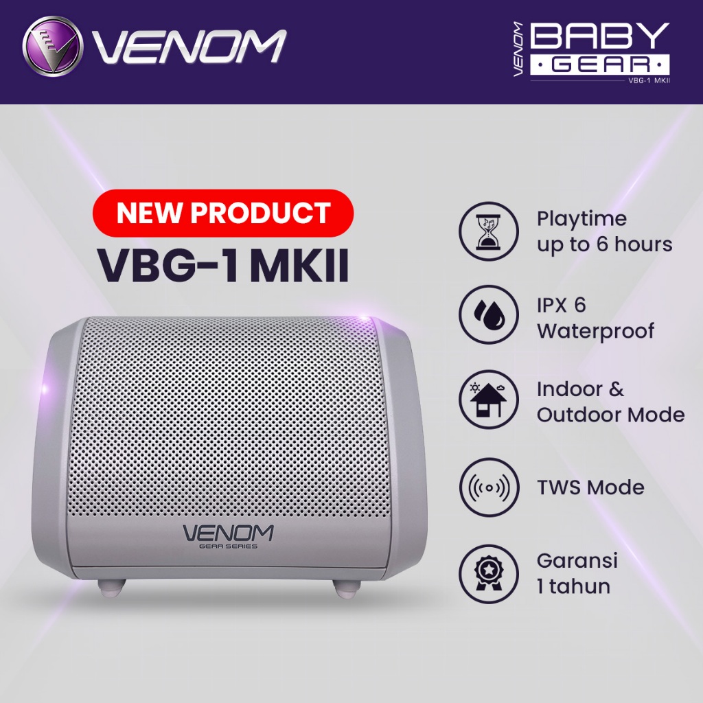 Venom Baby Gear VBG-1 MKII Speaker Bluetooth Portable Dengan Mode Stereo