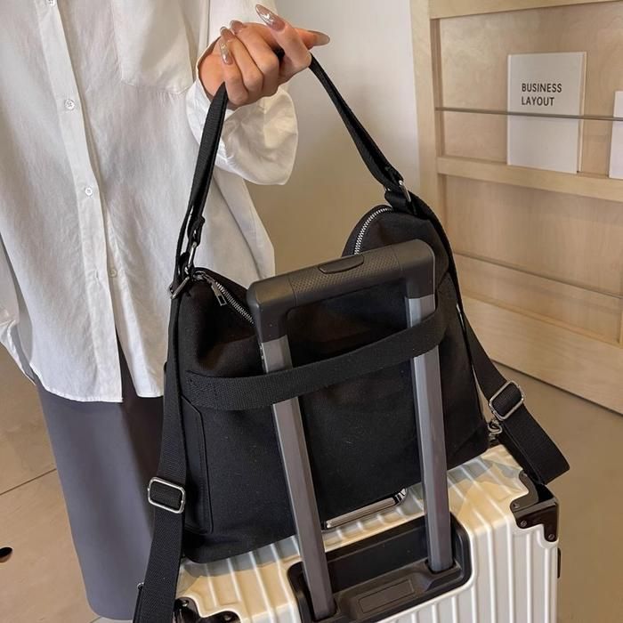 tas wanita retro canvas large capacity kapasitas besar casual tote bag selempang crossbody shoulder backpack bag - Beige