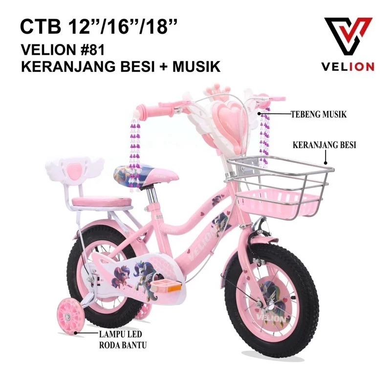 SALE Sepeda Anak Perempuan VELION LALIX Musik Ukuran 12 16 18 Inch Keranjang Usia 2-8 Tahun