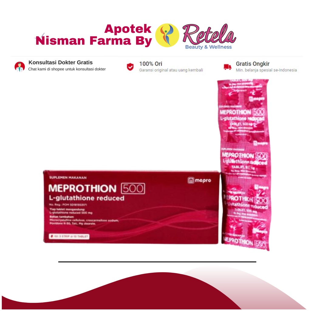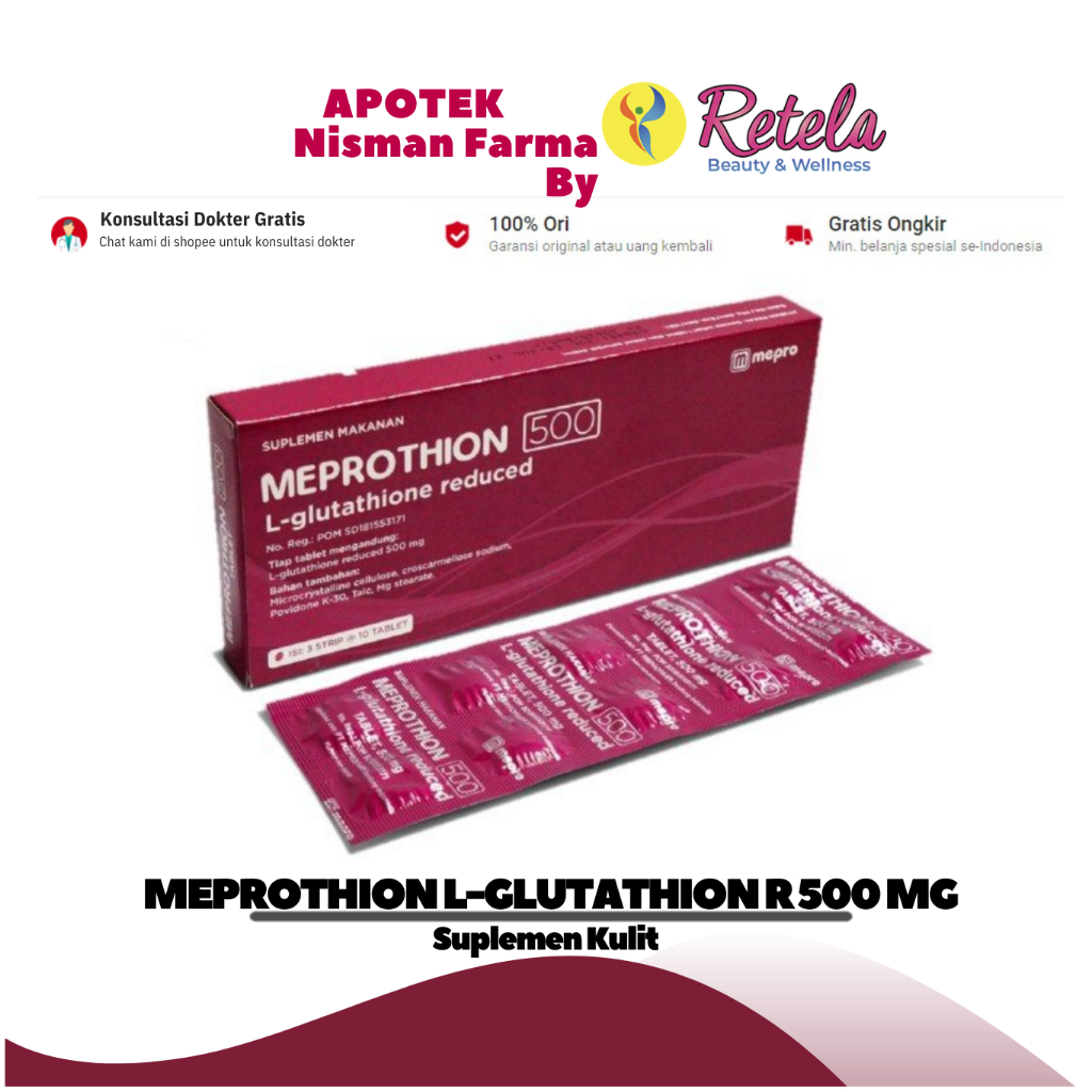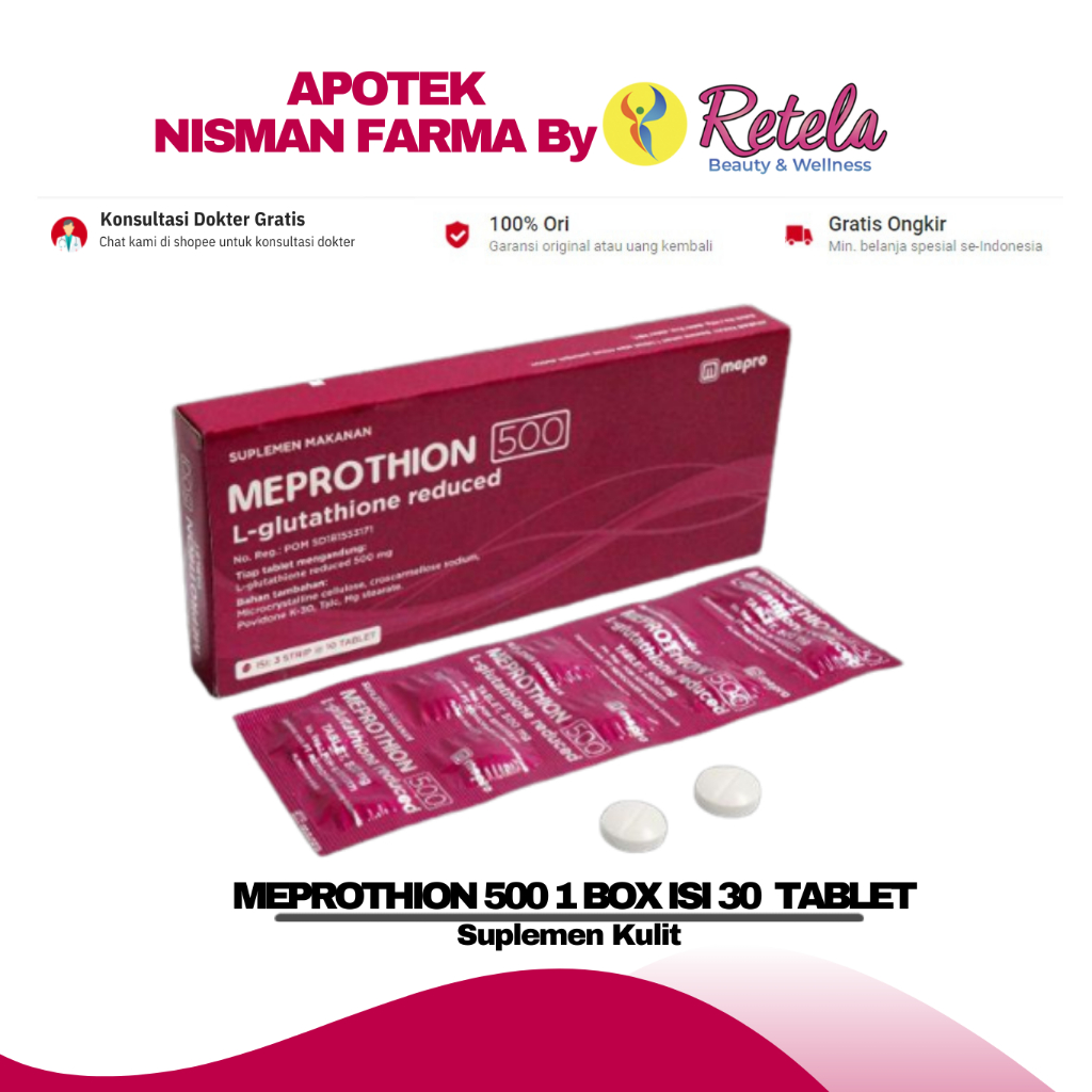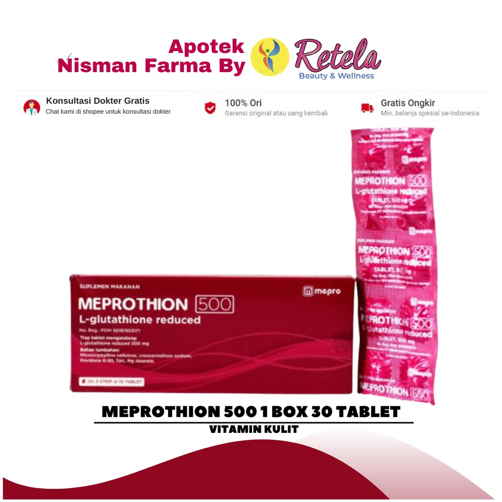 Meprothion L-Glutathion Reduced 500mg 1 Box 30 Tablet