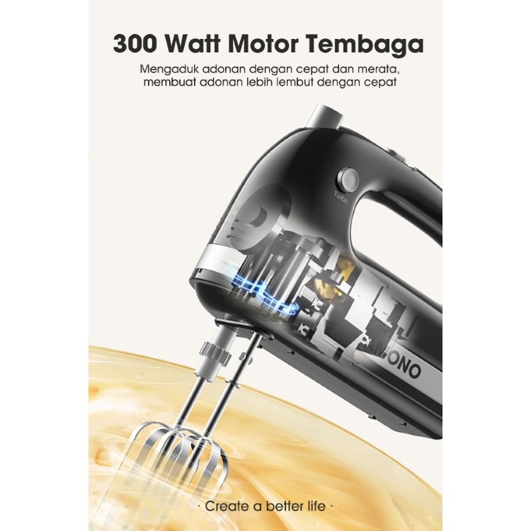 SAMONO Stand Mixer Baking 4L Pengaduk Adonan 300 Watt 5 Kecepatan SW-HMB300 Garansi Ganti Baru
