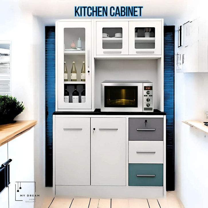 Murah Constante Lemari Rak Dapur Dengan Lampu LED Besi Minimalis | Kitchen Cabinet | Kitchen Set | Lemari Makan | Lemar