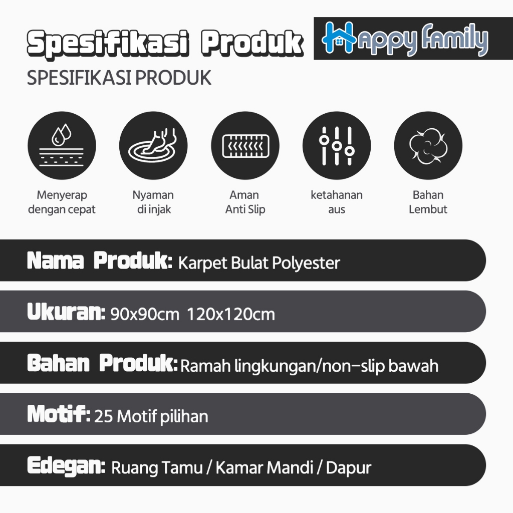 COZY HOME STORE Karpet Lantai Motif Lucu Polyester Bulat Ukuran 120x120cm Premium Anti Slip
