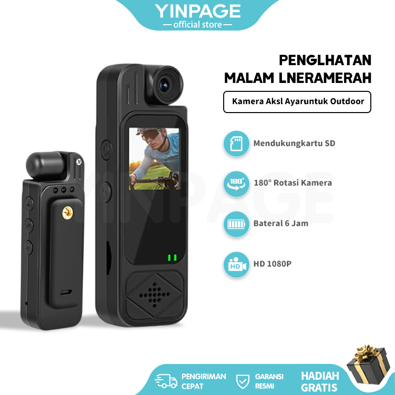 [Star] HD 1080P Mini Camera Olahraga Mini Camera Dudukan Dada Camera 180 ° Lensa yang Dapat Diputar dengan Koneksi Video