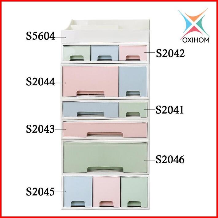 Oxihom Laci Lemari Plastik Susun Tempat Kotak Penyimpanan Drawer Storage Stackable Desktop Organizer Mainan Pakaian