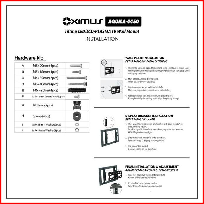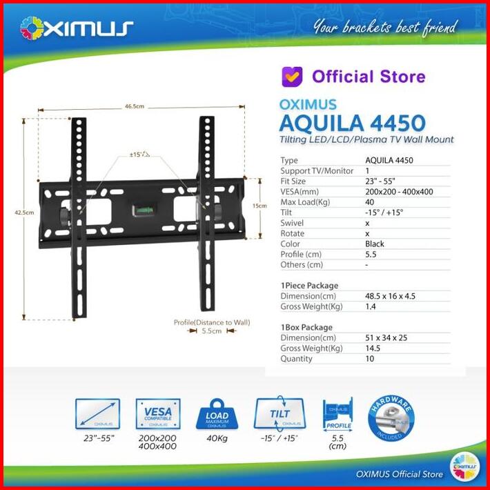 Bracket Tv Led Lcd Monitor 23 -55 Oximus Aquila 4450 Wall Mount Tilt