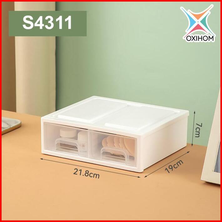 Oxihom Laci Lemari Plastik Susun Kotak Penyimpanan Transparant