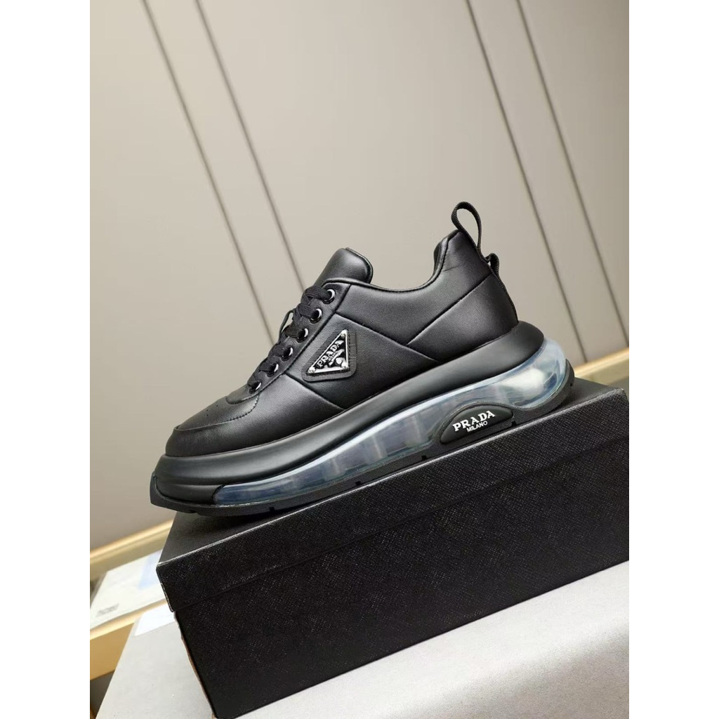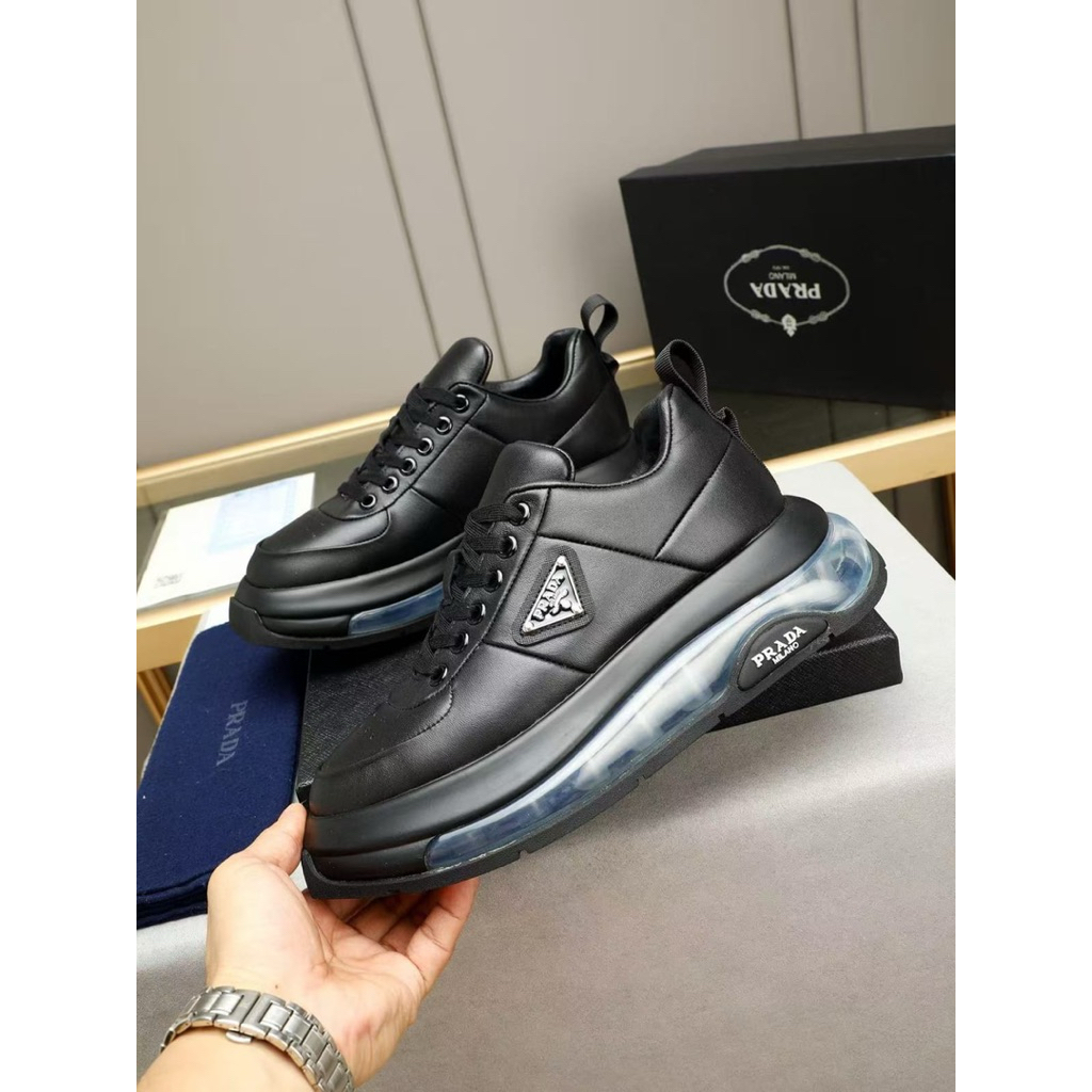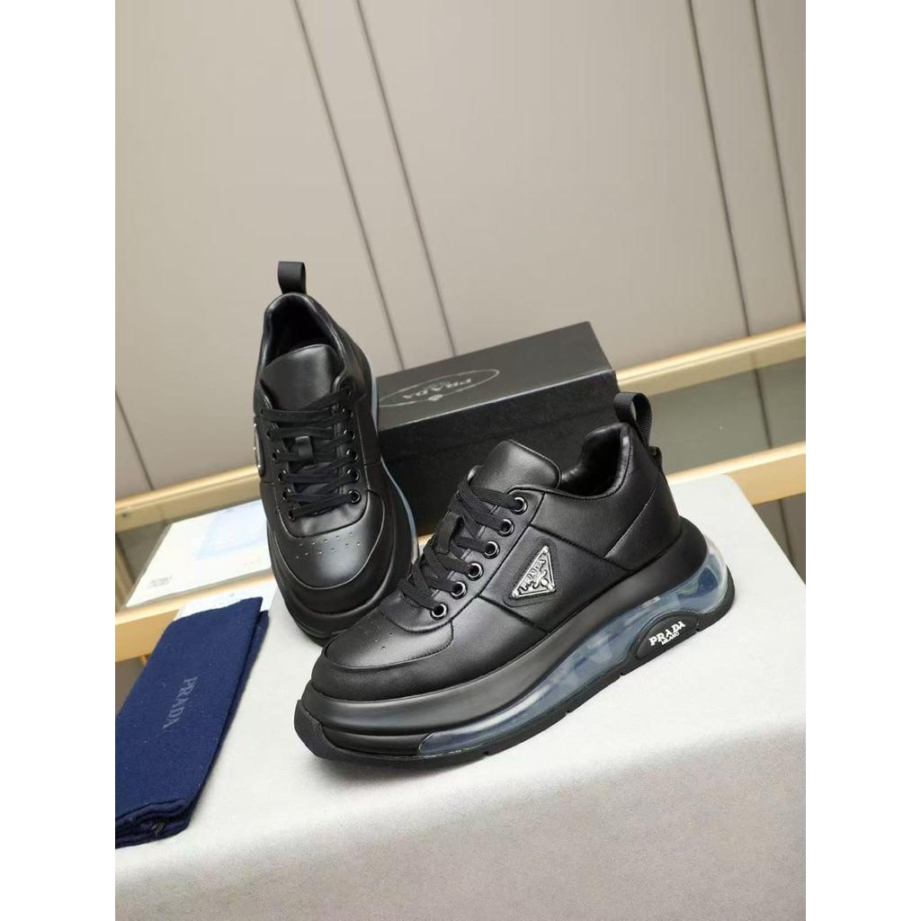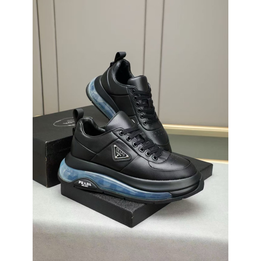 SEPATU PRIA PRADA SNEAKERS TALI HITAM SEPATU KERJA SEPATU FULL HITAM TERBARU 121021