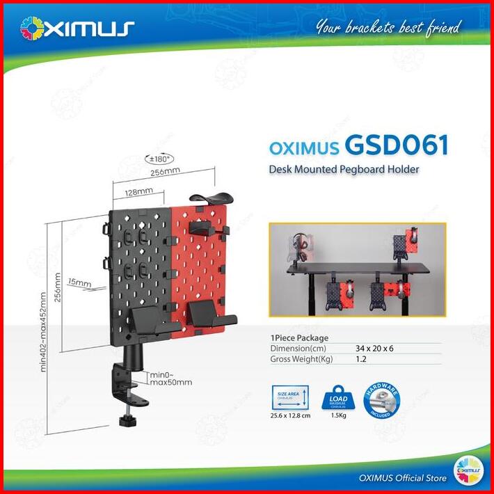 Rak Papan Jepit Pegboard Holder Hanger Deskmount Gaming Oximus Gsd061