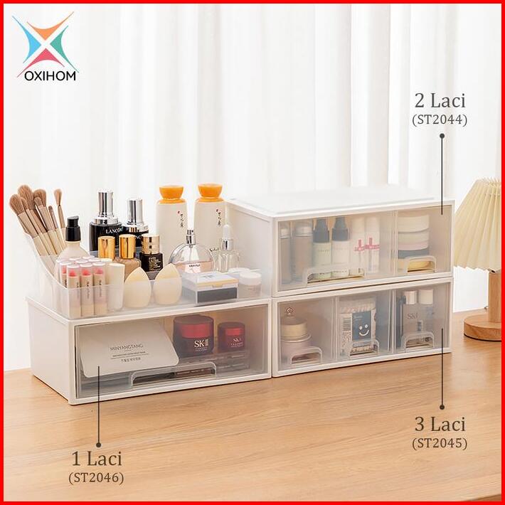 Oxihom Laci Lemari Plastik Susun Tempat Kotak Penyimpanan Drawer Storage Stackable Desktop Organizer Mainan Pakaian