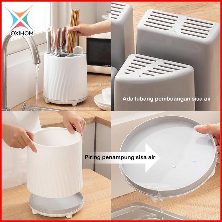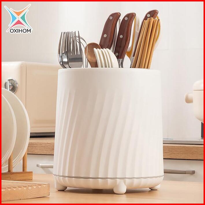 Oxihom Tempat Sendok Garpu Putar Tempat Pisau Rak Dapur Putar Plastik