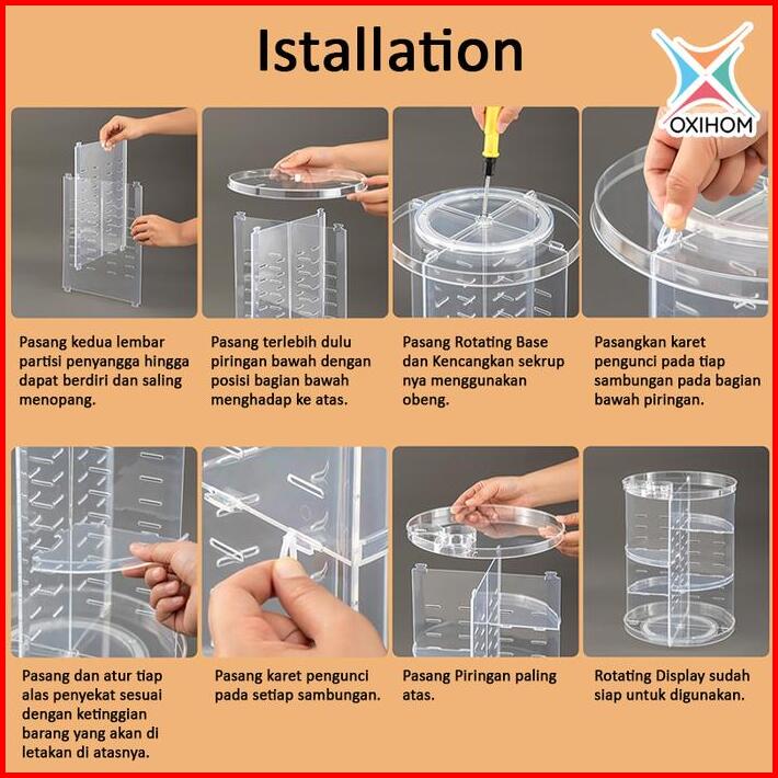 Oxihom Rak Putar Akrilik Rak Dapur Rak Kosmetik Rak Bumbu Lazy Susan S0159 Penyimpanan Plastik
