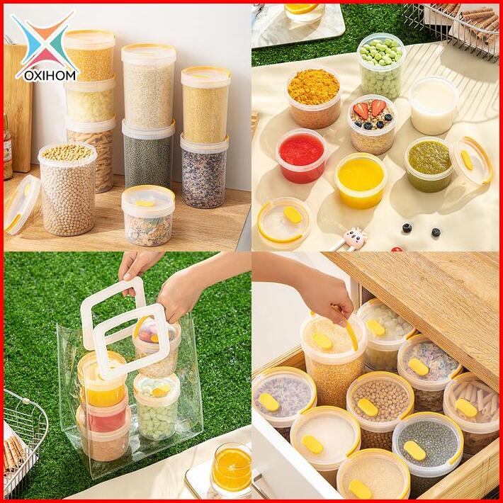 Oxihom Toples Plastik Bening Putar Kedap Udara Tempat Bumbu Dapur Kitchenware Snack
