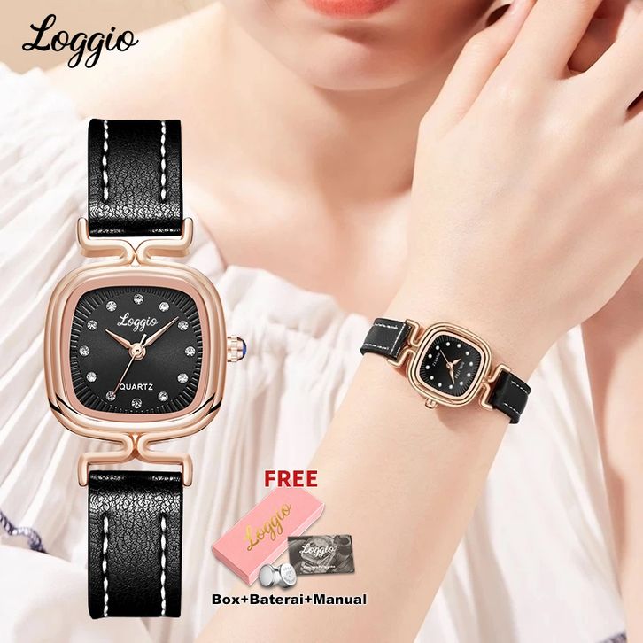 Loggio Jam Tangan Wanita Wanita Analog Original Korea Waterproof Watches Retro Kuarsa Berlian Jam Tangan Cewek