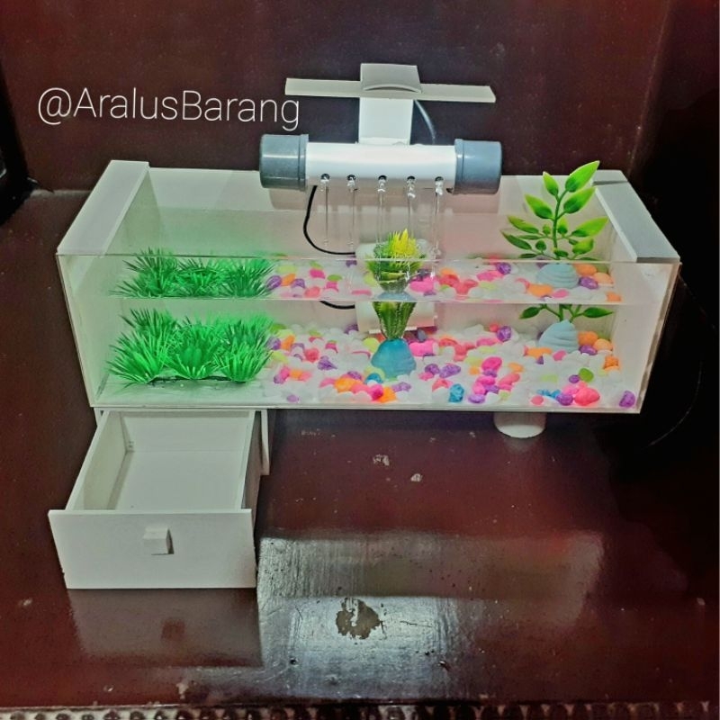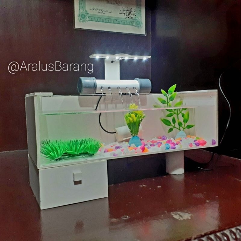 TERLARIS Aquarium Minimalis Fullset Dengan Filter Dan Lampu LED