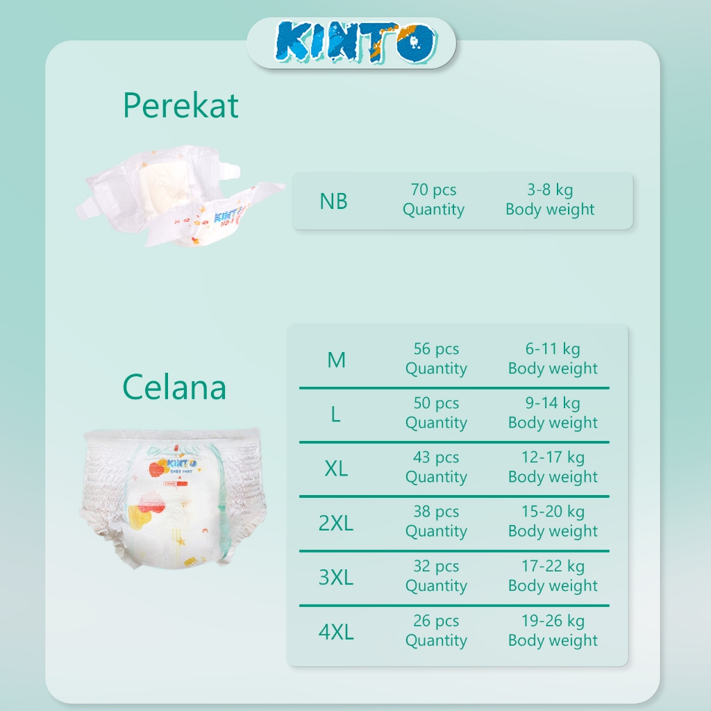 Popok Bayi Celana Anti Bocor Baby Pants kinto Newborn NB/S70/M56/L50/XL43/XXL38/XXXL32/XXXXL26