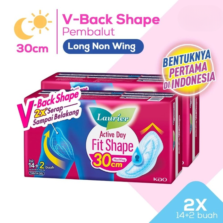 Laurier Active Day Fit Shape Pembalut Wanita Untuk Hari Deras 30cm Non Wing V-back Shape Serap Sampai Belakang Isi 14+2