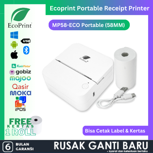 ECOPRINT Printer Thermal Portable Battery Bluetooth MP-58C RPP02N / printer bluetooth / printer epson / printer epson l3