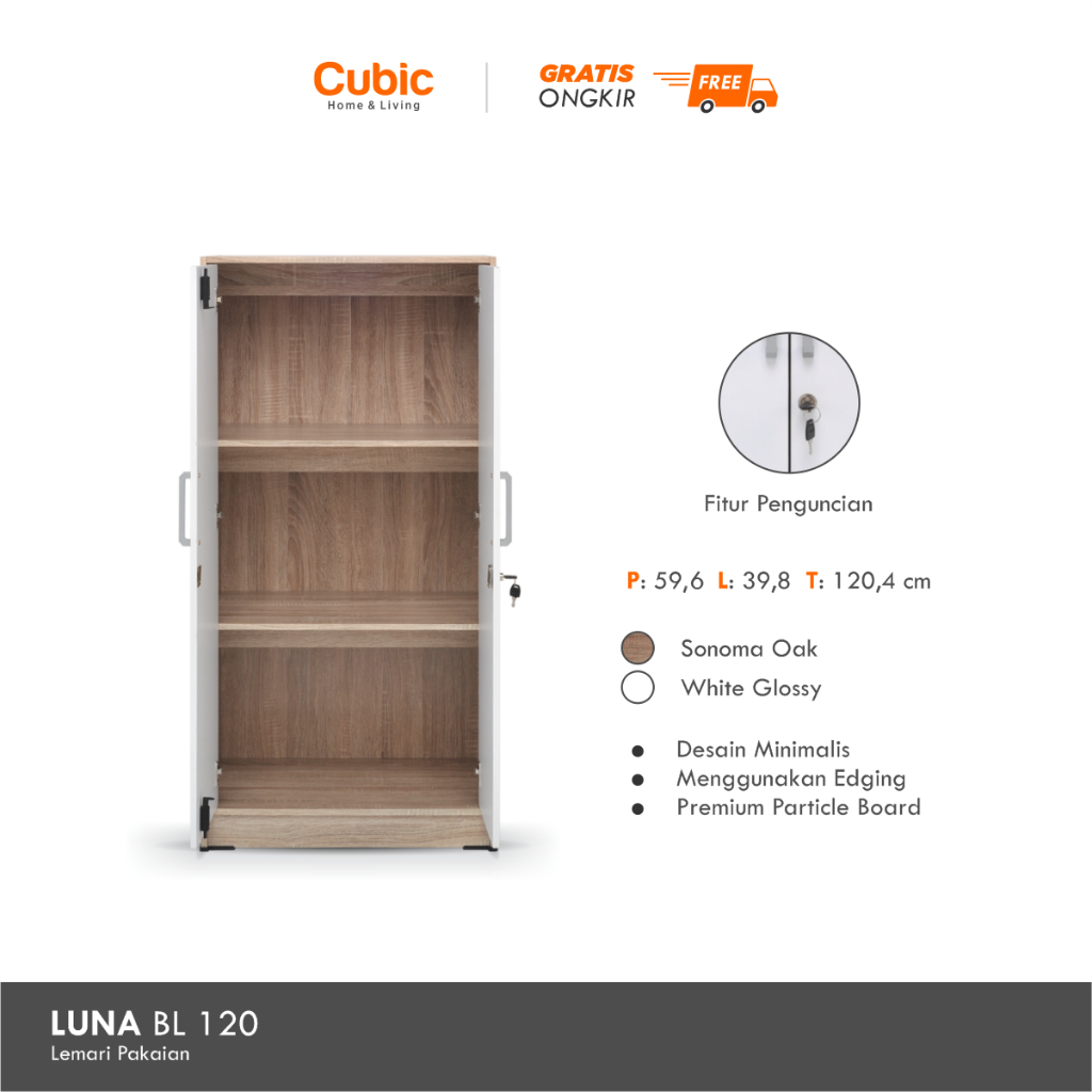 Lemari Pakaian Minimalis 2 Pintu Cubic LUNA BL 120 Desain Elegan dan Ringkas